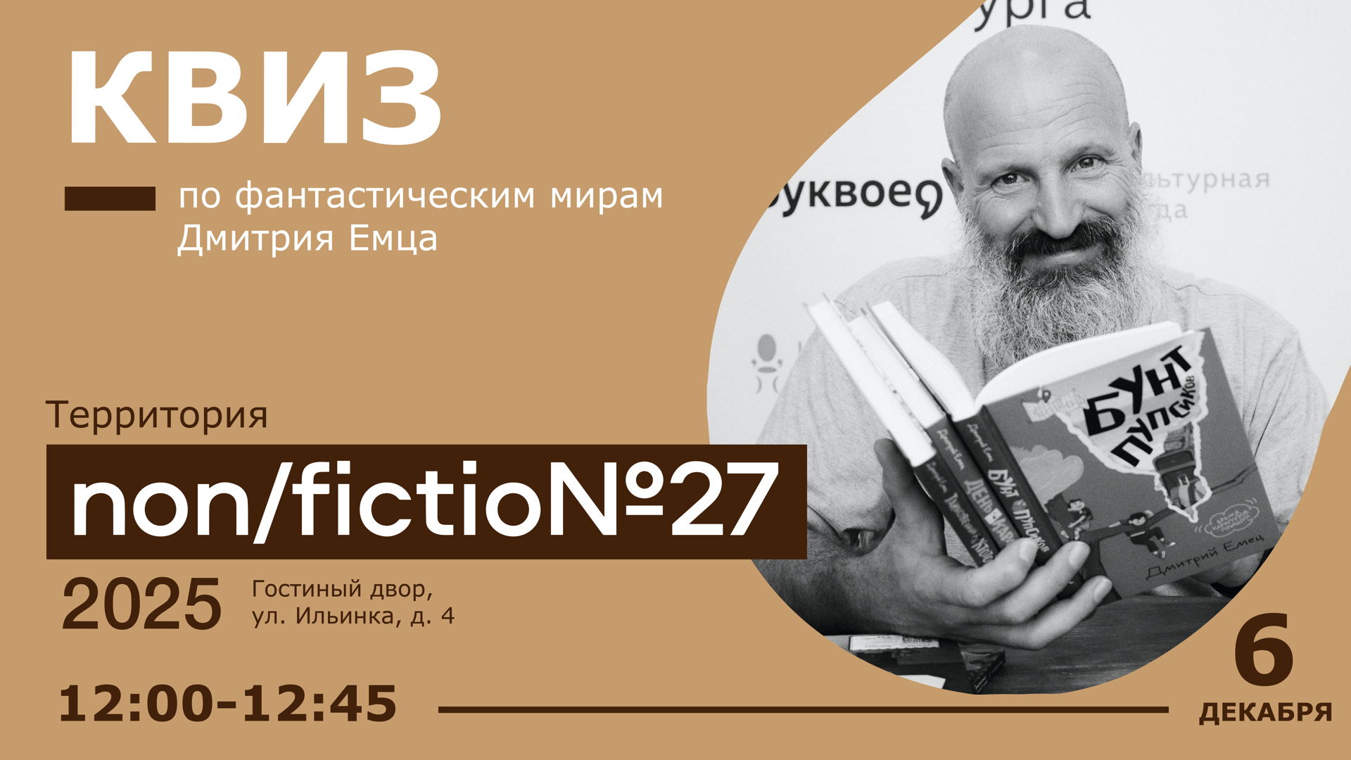 Приглашаем всех поклонников творчества Дмитрия Емца на увлекательный квиз, который будет проведен при участии автора! Это уникальная возможность проверить свои знания о любимых книгах, героях и приключениях, погрузиться в захватывающий мир фантазии и загадок.